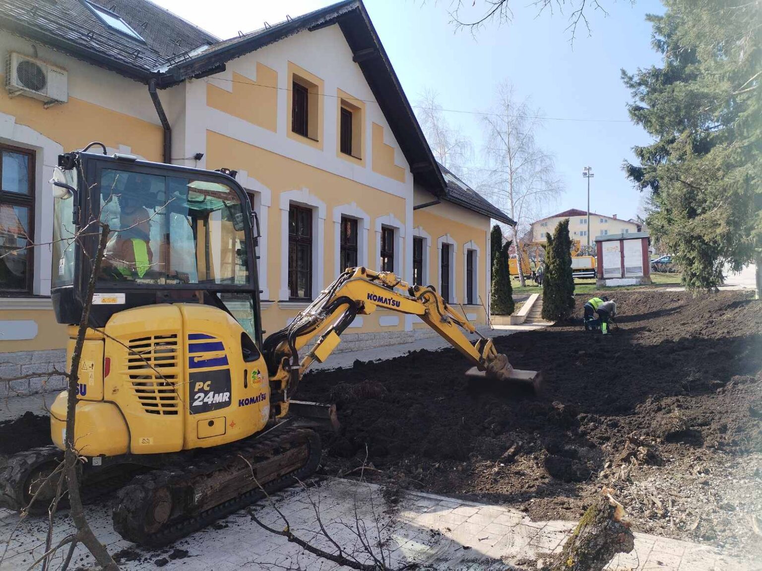 Nakon završetka radova na izgradnji kišne kanalizacije i drenaže kod zgrade Biblioteke „Ljubiša R. Đenić“ u Čajetini, naš tim radi na uređenju zelenih površina.